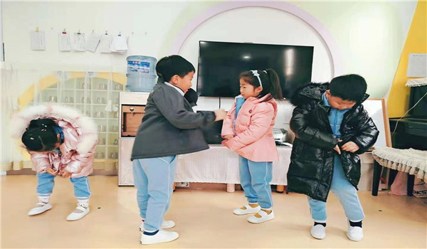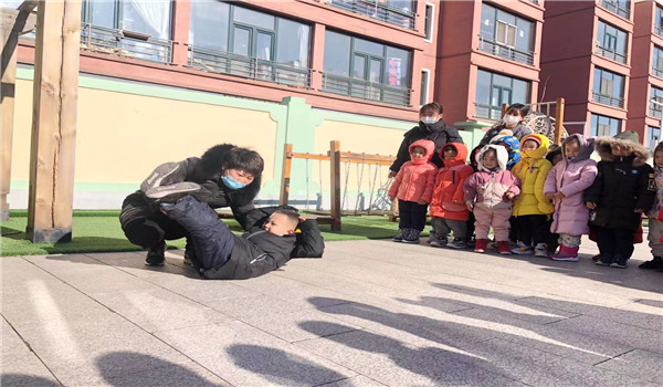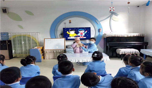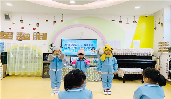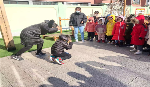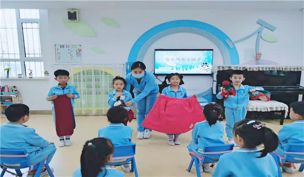 活动中,教师利用图片、视频、互动游戏等形式,围绕冬季防寒保暖和自我保护常识展开教育。教育幼儿户外活动时,要戴手套、围巾、棉帽、口罩、外套、耳罩等保暖工具,还要注意穿保暖性和防滑性较好的鞋子,走路时尽量稳步前行,以防摔倒。