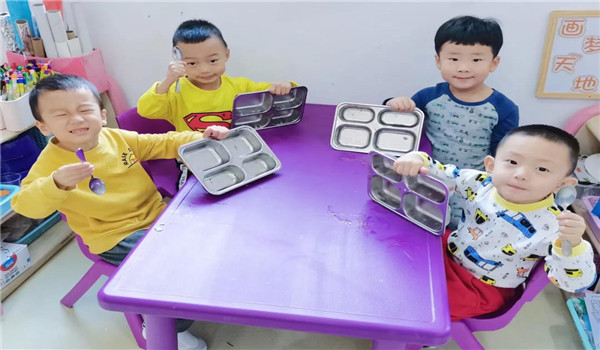 活动中,教师和幼儿共同小结班级植物角的种植心得,认识玉米、水稻等农作物的生长过程,感受农民伯伯一年四季劳作的辛苦,了解每一粒粮食的来之不易。随后,教师向孩子们展示了美好“食”光系列活动标识,通过趣味性的活动引导幼儿观察标识的特点,鼓励幼儿进行大胆的想象,帮助他们了解标识的意义,激发对美好“食”光活动的热情。午餐环节,幼儿把爱惜粮食的意识付诸行动,将盘子里的美食吃得干干净净,并开心的向大家展示自己的空餐盘,纷纷表示回家后要告诉爸爸妈妈一起爱惜粮食,全家人争当“光盘达人”。