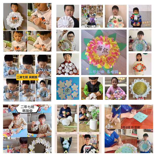 线下学生们通过综合实践活动,开展动手制作“五彩鸡蛋”、制作绿色花圈、诵读清明古诗、进行网上祭英烈等一系列活动,深切感知清明节这个传统节日的意义,将爱国主义情怀根植于心。