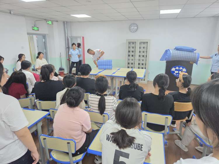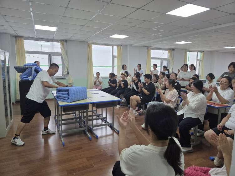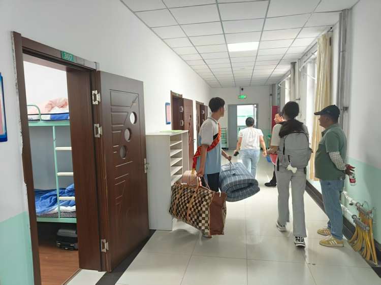 入校后,学生和家长们在工作人员的指引下进入学生宿舍,办理入住,整理寝室。班主任在班级召开家长会,学生在体育馆参加新生入学教育。下午宿舍管理员对新生进行内务整理培训,培养大家的自律习惯,让新生快速融入集体。