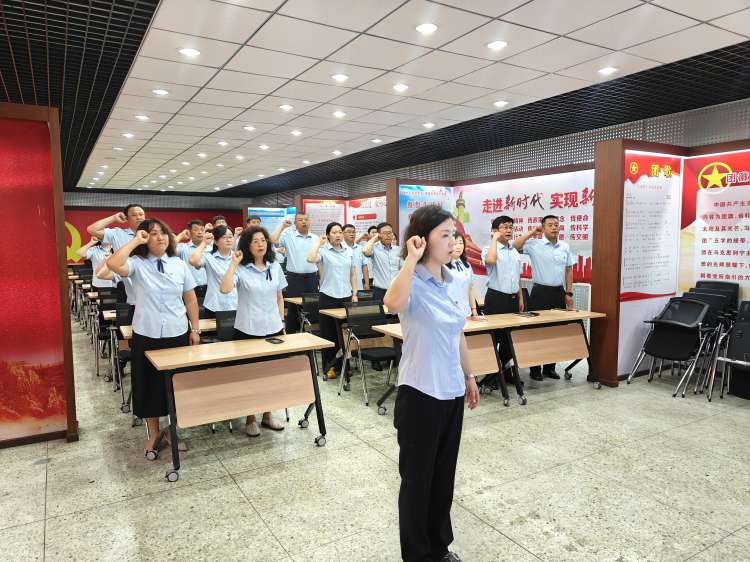 活动在庄严的氛围中拉开序幕。党建办公室主任纪莉介绍活动流程与意义后,党支部书记、校长赵福男带领全体党员重温入党誓词。面对鲜红的党旗,党员们高举右拳,铿锵有力的誓言响彻全场,字字千钧的誓词提醒着每一位党员所肩负的神圣职责和使命,坚定了为党的事业奋斗终身的决心和信念。