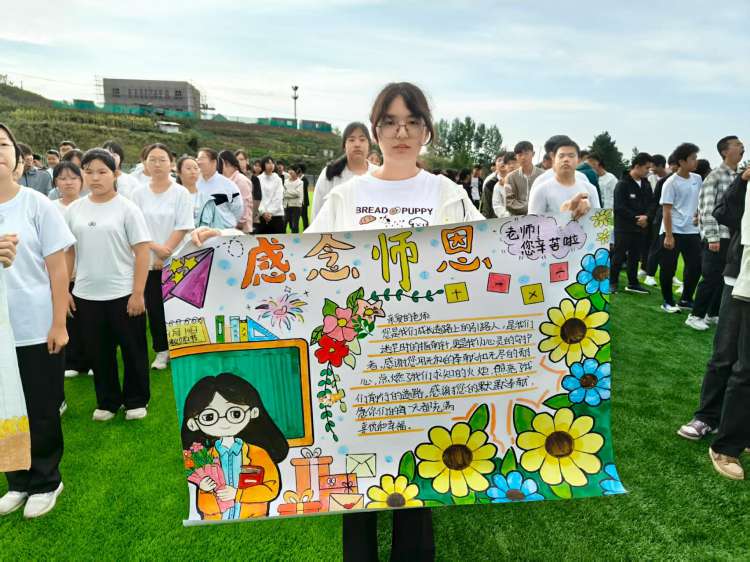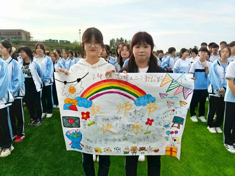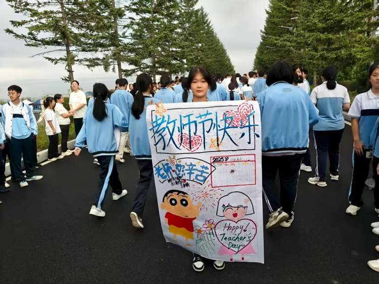 在庆祝活动中,学生代表崔彦玲发言,细数师者暖心点滴,誓言以优异成绩回馈师恩。随后,各班自行组织拍集体照,相机快门声不断,照片里,老师们的笑容格外灿烂,学生们的脸庞满是朝气,每一张合影,不仅是对教师节的纪念,更是对高中时光里师生同行的珍贵记录。