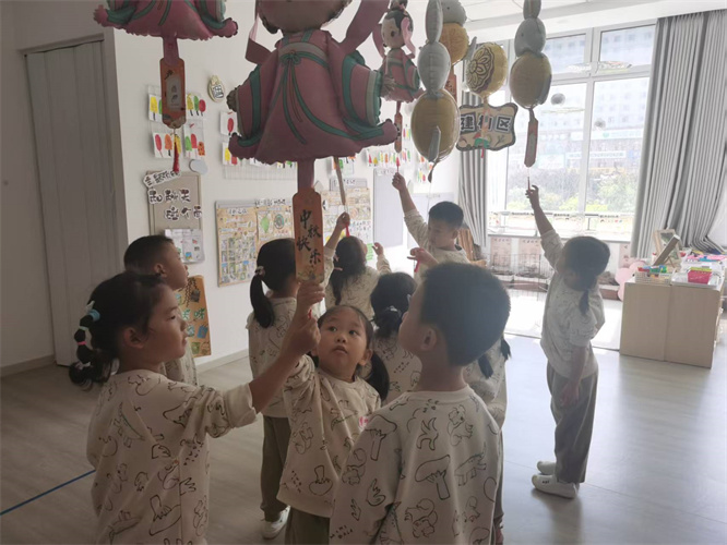 活动中,教师结合幼儿的年龄特点,通过看视频、听故事、绘本阅读等形式,引导幼儿在轻松愉快中了解中秋节的来历和习俗,知道中秋节寄托了对亲人的浓浓思念和美好祝福,也让“团圆”的理念在孩子们心中悄然扎根。