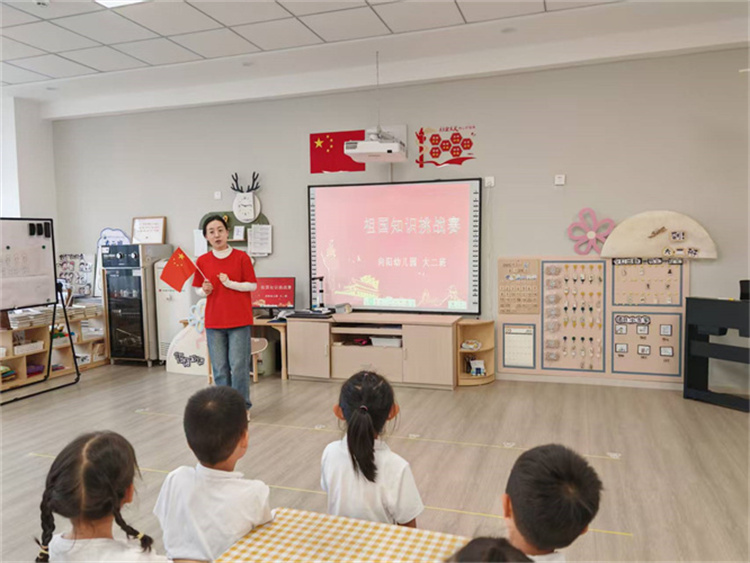 为迎接中华人民共和国成立76周年,进一步深化爱国主义教育,弘扬红色文化,9月25日,向阳幼儿园开展了“童心向祖国•共庆76华诞•红色润童心”国庆主题系列教育活动。引领幼儿踏上了一场别开生面的红色文化探索之旅,让红色基因在幼小心灵深处悄然萌发,茁壮成长。
