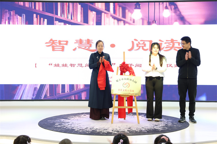 宣誓结束后,激动人心的揭牌仪式正式开启。园所领导郑重展示了“书香文化示范园”牌匾,现场响起热烈掌声,这掌声不仅是对幼儿园的祝贺,更是对智慧化阅读教育未来发展的美好展望。