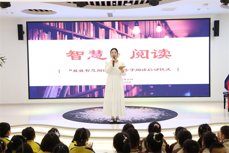 随后,教师代表上台宣读亲子阅读倡议书,倡议教师们要以“娃娃智慧阅读APP”为教学辅助工具,设计更具趣味性、互动性的阅读课程,积极引导家长重视亲子阅读,通过APP分享阅读技巧、组织线上亲子阅读活动,共同营造“人人爱阅读、家家有书香”的浓厚氛围。教师代表的发言不仅展现了教师团队对智慧化阅读教育的重视,更传递出教师们助力幼儿阅读成长的坚定决心。