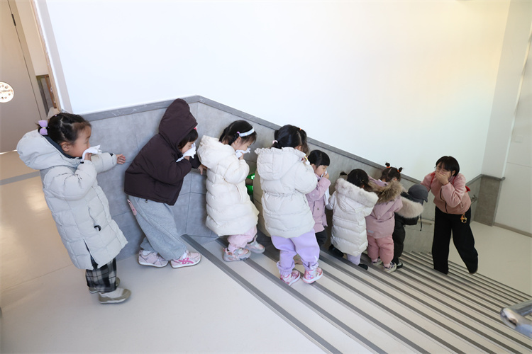 上午10点30分,尖锐的火灾警报声划破校园,演练正式启动。各班教师反应迅速,立即组织孩子取湿毛巾捂住口鼻,保持弯腰低姿,沿着预设疏散路线快速向操场安全区域撤离。到达指定地点后,教师第一时间清点幼儿人数,确认无遗漏后向演练总指挥汇报。整个疏散过程紧张有序、规范高效,仅用3分钟便完成全部安全撤离。