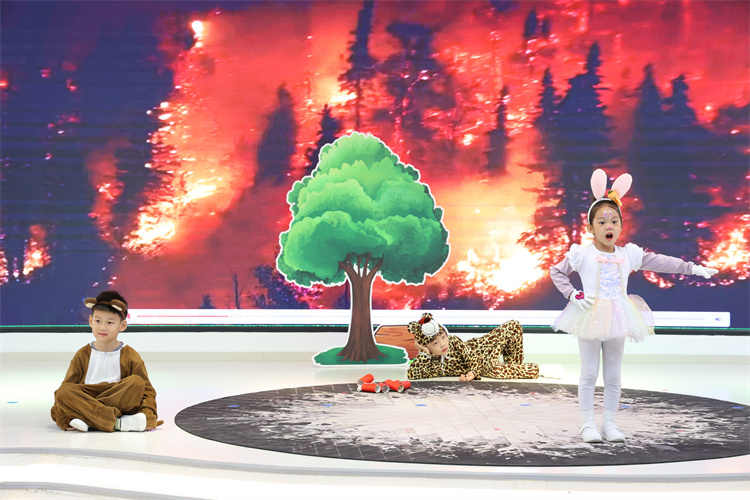 升旗过后,精彩纷呈的消防主题节目轮番上演。首先登场的是森林防火童话剧,小演员们身着可爱的动物服装,生动演绎了森林里的小动物们如何发现火情、及时报警并配合消防员叔叔灭火的故事。孩子们用稚嫩的语言和夸张的动作,将防火知识融入剧情,台下的小观众们看得津津有味,不时报以热烈的掌声。