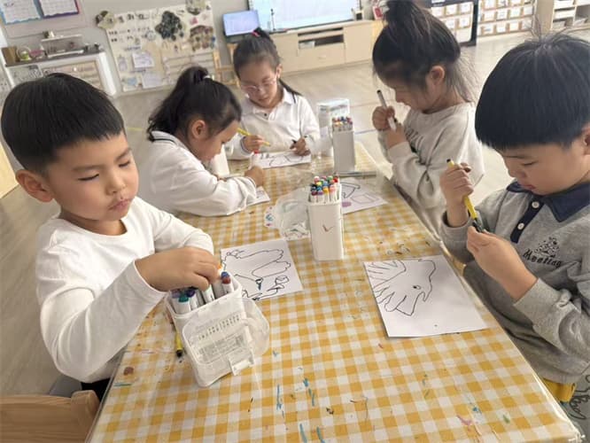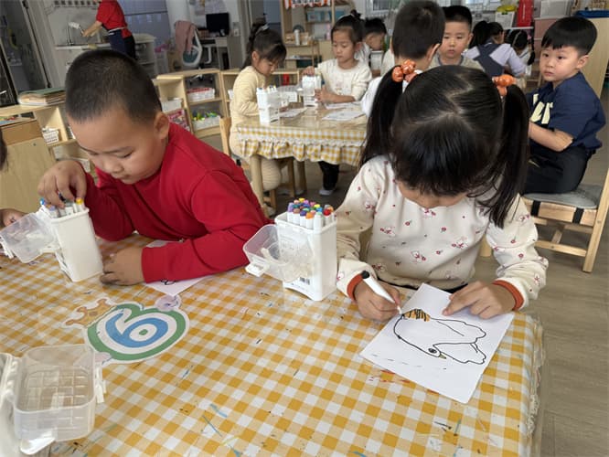 随后,“绘制和平鸽”手工绘画活动将现场氛围推向高潮。孩子们手握五彩画笔,凝神勾勒、细心涂色,将对和平的向往倾注于笔尖。绘画活动结束后,全体幼儿手持亲手制作的和平鸽整齐列队,齐声唱响《中华少年》。嘹亮的歌声回荡在幼儿园,孩子们眼神坚定、身姿挺拔,传递出新时代少年儿童铭记历史、砥砺前行,守护和平、茁壮成长的坚定决心。