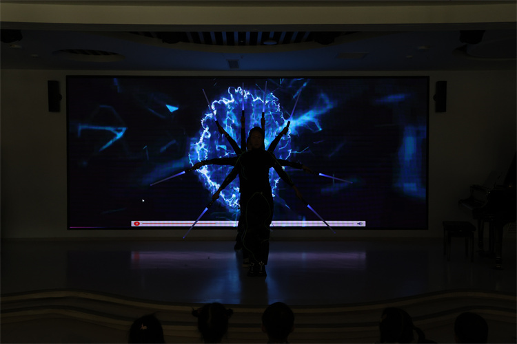 小班段以“音你而来,悦芽初绽”为主题,打造了适配低龄幼儿的温馨互动场景。活动伊始,音乐节专属AI卡通形象吉祥物“符宝”带着软糯的声音与孩子们亲切打招呼,瞬间拉近了与幼儿的距离。在教师的耐心引导下,小班萌娃们跟着简单轻快的旋律拍手、跺脚,演绎着稚嫩可爱的儿歌串烧,用最纯粹的声音表达对音乐的喜爱。“听声音认小动物”的趣味游戏更是让现场氛围热闹不已,孩子们认真倾听、积极抢答,在轻松玩乐中初步感知声音的奇妙,为这场音乐之旅埋下了快乐的伏笔。教师们与机器人天团携手带来主题曲唱跳《舞台上的小太阳》,颜值与才华兼具的表演、未来感十足的搭配,将活动氛围推向开幕式的高潮。神秘嘉宾带来的小羊互动舞憨态可掬,让孩子们忍俊不禁。教师们精心编排的暗夜荧光舞,在光影变幻中展现别样魅力,仿佛“闪电侠”降临现场,引得孩子们惊呼不断。